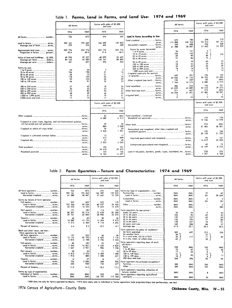 Farms, Land in Farms, and Land Use:Table Forms with sales of $2,500 and overall formal forms number 1974 and 19691974196919741969Totol cropland forms acres 149 833 Harvested cropland forms 438 acres