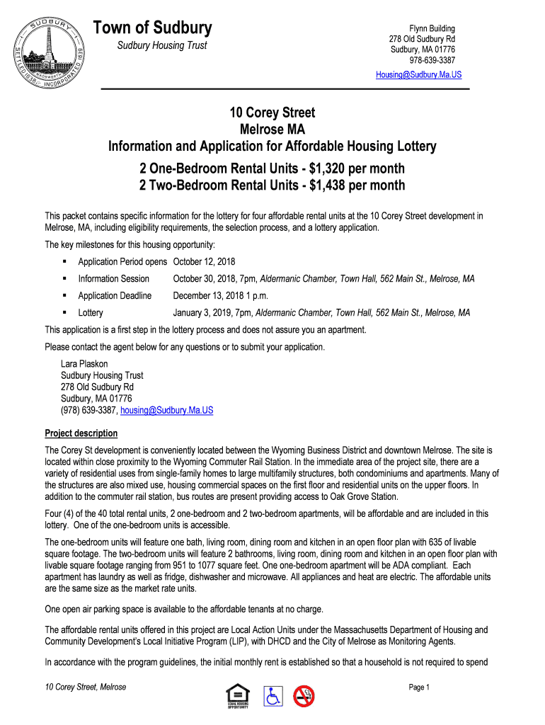 Town of Sudbury Housing Trust Flynn Building 278 Old Sudbury Rd Sudbury, MA 01776 9786393387 Housing Sudbury. Ma.US10 Corey Street Melrose MA Information and Application for Affordable Housing Lottery