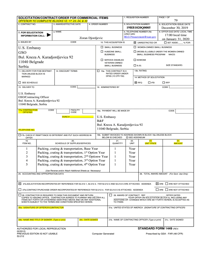 SOLICITATION/CONTRACT/ORDER FOR COMMERCIAL ITEMS1. REQUISITION NUMBERING 1 OF5. SOLICITATION NUMBER6. SOLICITATION ISSUE DATE79OFFEROR TO COMPLETE BLOCKS 12, 17, 23, 24, & 30 2. CONTRACT NO.3. AWARD/EFFECTIVE