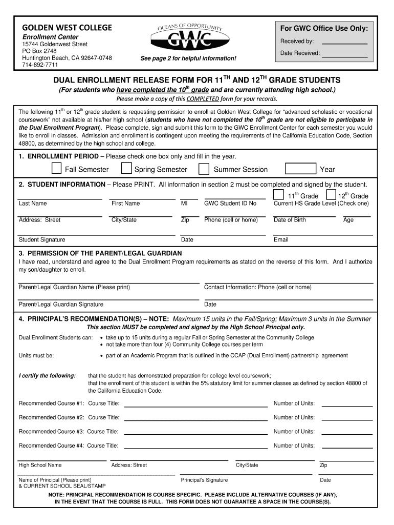 How to fill out dual enrollment release form?