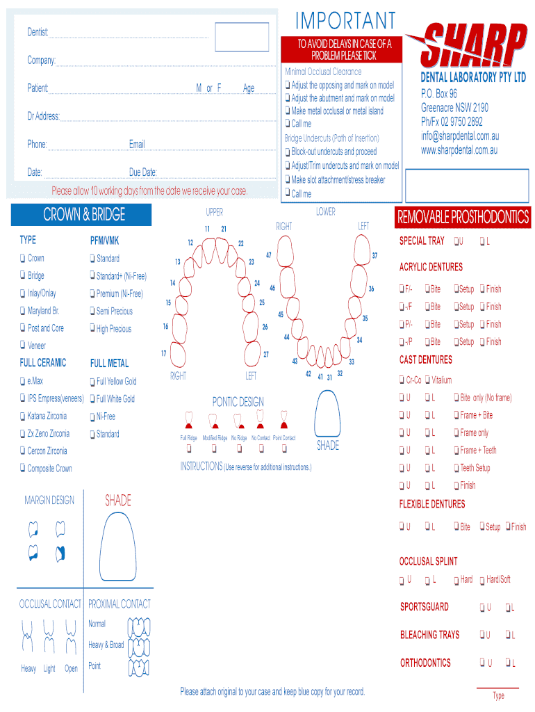 Whether someone needs a routine check-up, teeth cleaning, dental restoration, or any other dental procedure, they may be asked to fill out the sharp dental lab form.