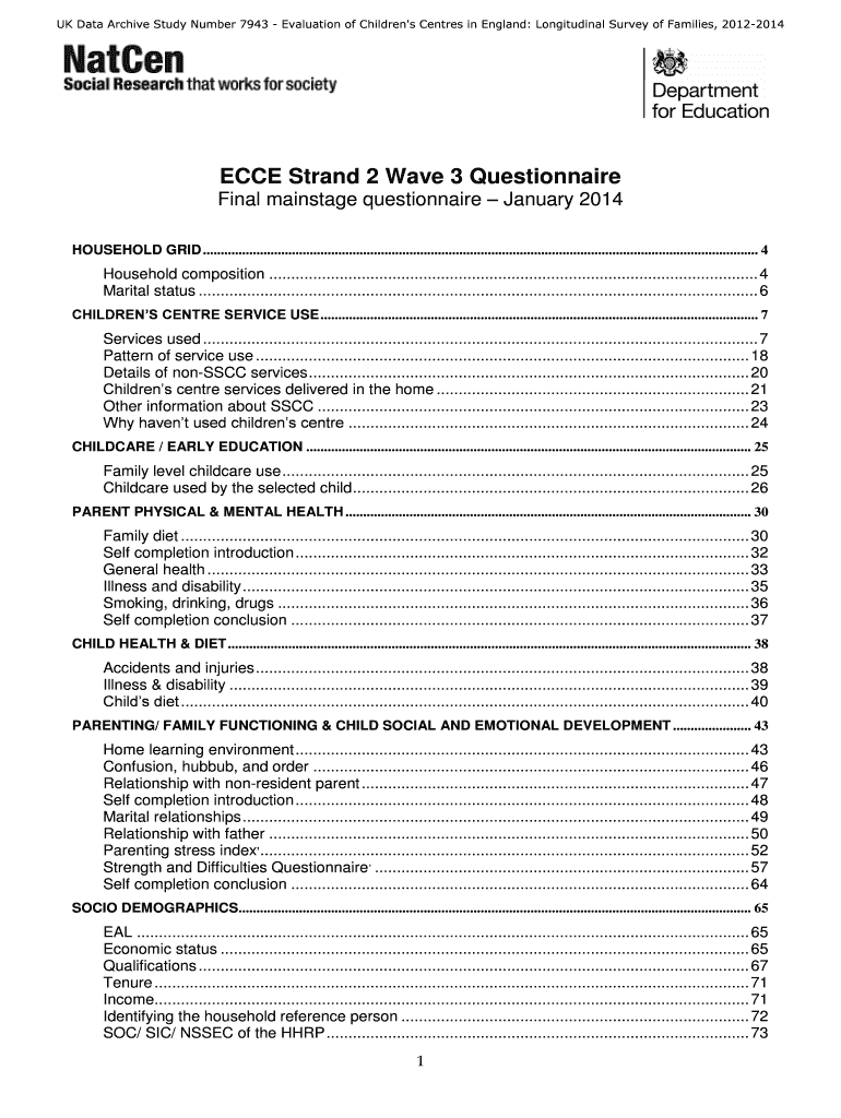 UK Data Archive Study Number 7943 Evaluation of Children's Centers in England: Longitudinal Survey of Families, 20122014ECCE Strand 2 Wave 3 Questionnaire Final main stage questionnaire January 2014