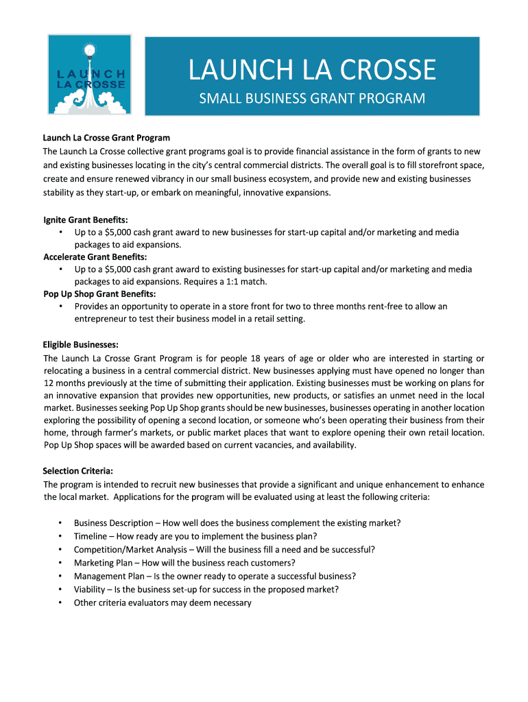 The Launch La Crosse collective grant programs goal is to provide financial assistance in the form of grants to new