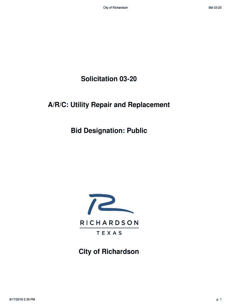 City of Richardson 03205Solicitation 0320A/R/C: Utility Repair and Replacement Designation: Publicity of Richardson6 9/17/2019 2:39 PMP. 1City of Richardson 03205Bid 03 20 A/R/C: Utility Repair and