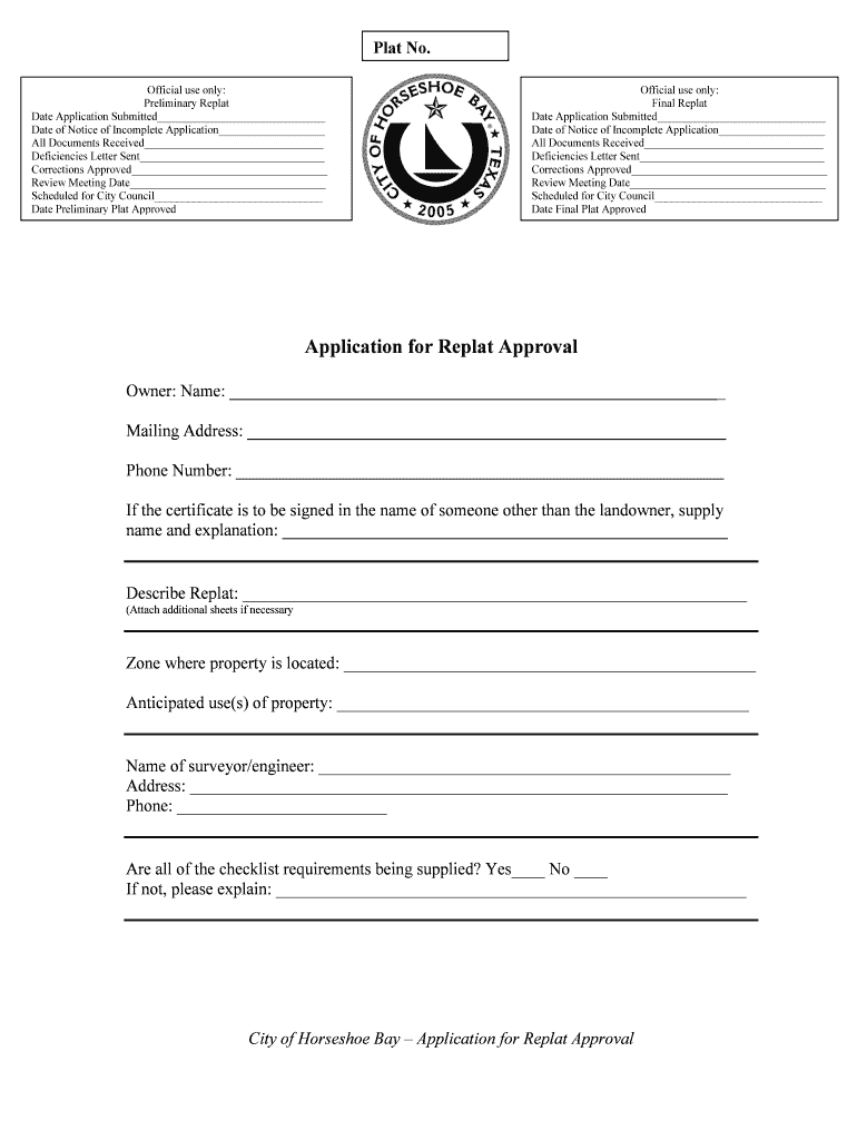 Get the free Application for Rep lat Approval - Horseshoe Bay, Texas