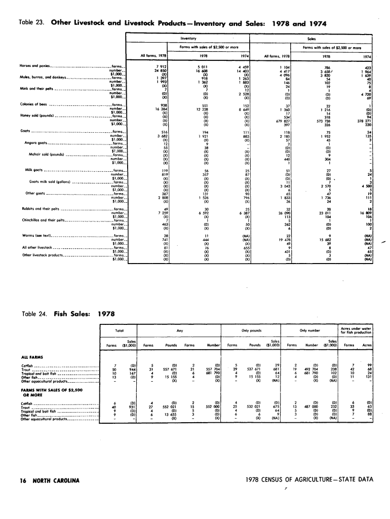 Table 23. Other livestock and Livestock Products Inventory and Sales:1978 and 1974InventorySale. Form. With sale. Of $2,500 or workhorses and pontes forms 19781974All farm s, 19787912 248505011 16608004