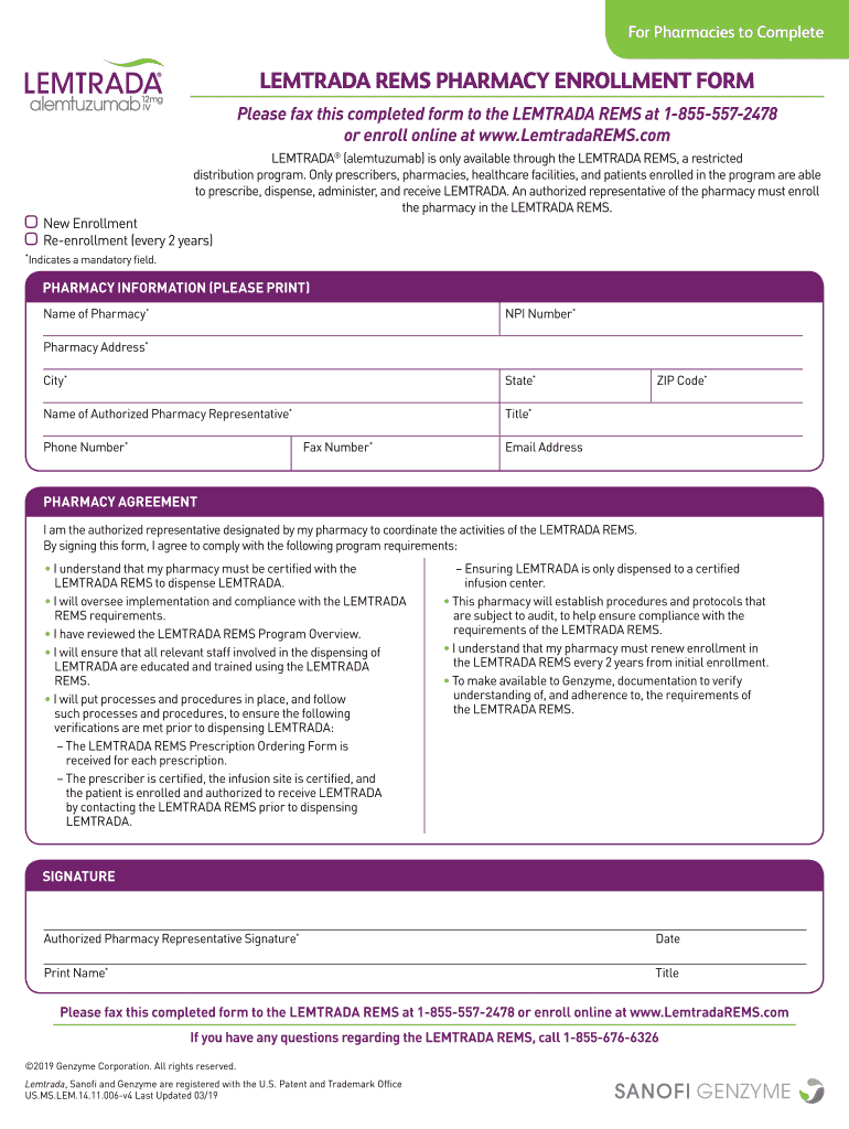 How to fill out lemtrada rems pharmacy enrollment?
