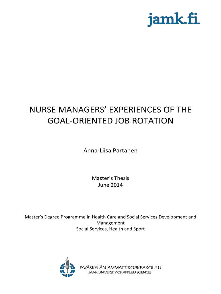 NURSE MANAGERS EXPERIENCES OF THE GOAL-ORIENTED JOB ROTATION Annalisa Partaken Master’s Thesis June 2014 Masters DegreProgramme in Health Care and Social Services Development and Management Social