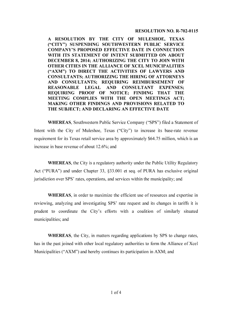 (CITY) SUSPENDING SOUTHWESTERN PUBLIC SERVICE