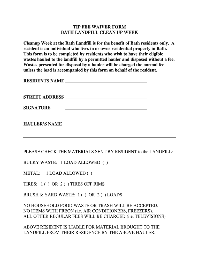 Tip Fee Waiver Form is not the form you're looking for?Search for another form here.