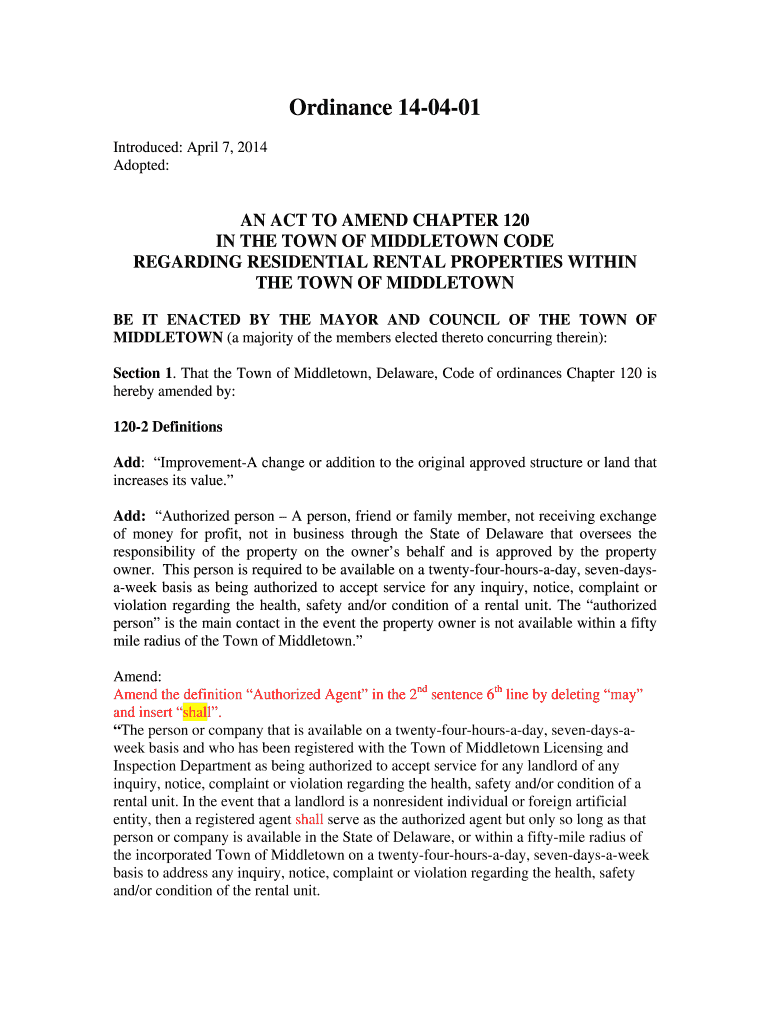 Adopted:AN ACT TO AMEND CHAPTER 120