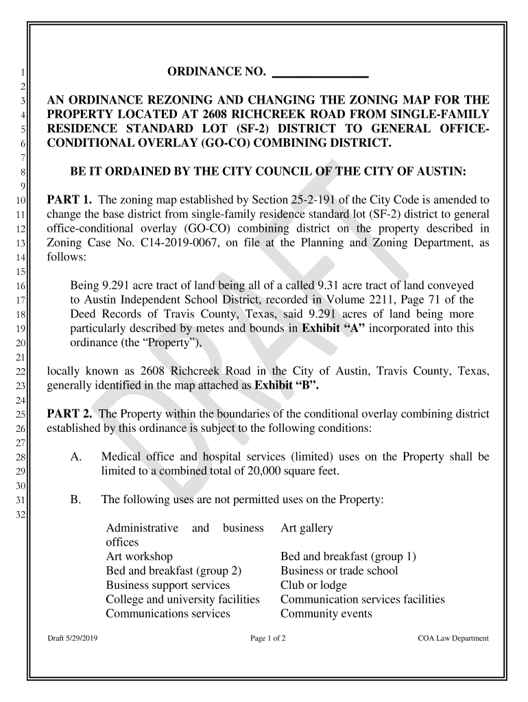 1 2 3 4 5 6 7 8 9 10 11 12 13 14 15 16 17 18 19 20 21 22 23 24 25 26 27 28 29 30 31 32ORDINANCE NO. AN ORDINANCE REZONING AND CHANGING THE ZONING MAP FOR THE PROPERTY LOCATED AT 2608 MILLCREEK ROAD