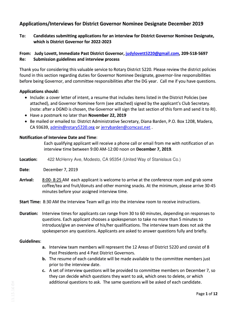 Get the free Applications/Interviews for District Governor Nominee Designate December 2019