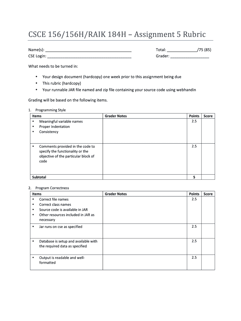 Edit your assignment05-rubricdocx - cse unl form online