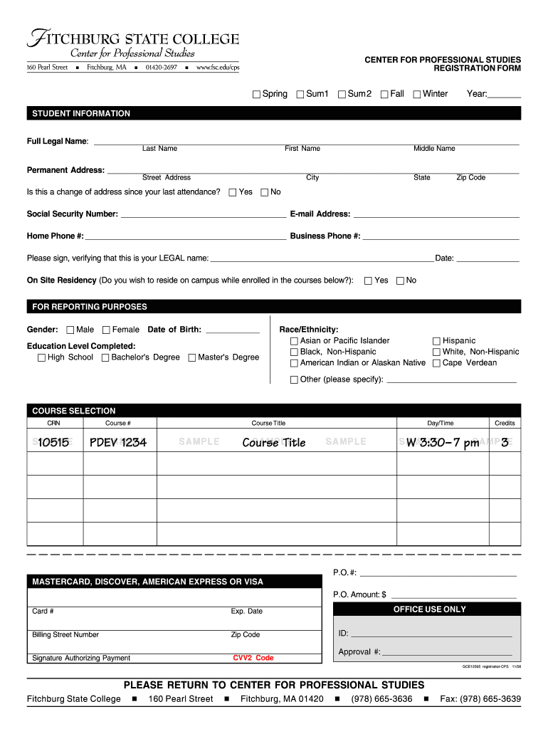 CENTER FOR PROFESSIONAL STUDIES REGISTRATION FORM ? Spring ? Sum1 ? Sum2 ? Fall ? Winter Year: STUDENT INFORMATION Full Legal Name: Last Name First Name Middle Name Permanent Address: Street Address