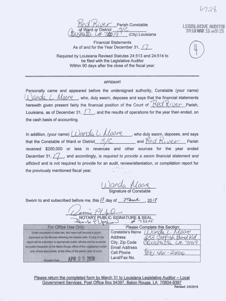 6754 /I Parish Constable of V rd or District. /(L LJ9 LIM (City) L sianaLEGISLftnUEflUDnOF 2018MflRlGAH9:i5Financial Statements As of and for the Year December 31, / 'y Required by Louisiana Revised
