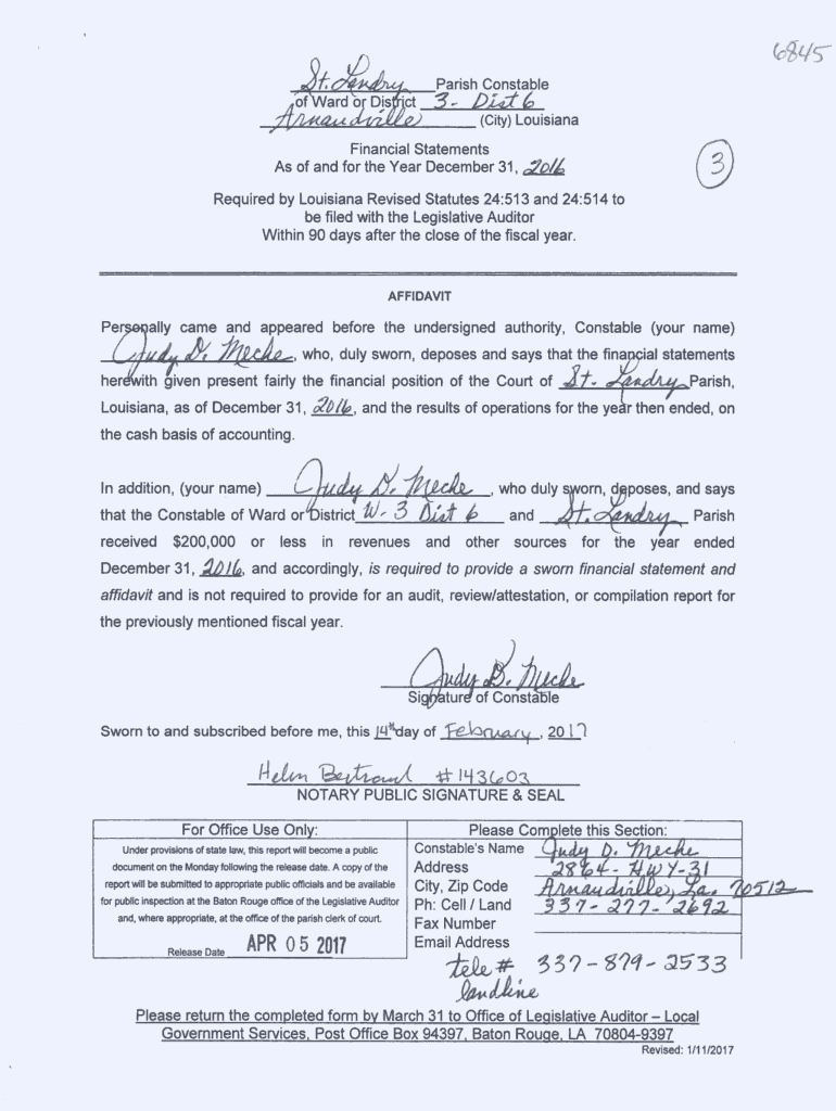 Get the free Parish Constable As of and for the Year December 31, o/L - app1 lla state la