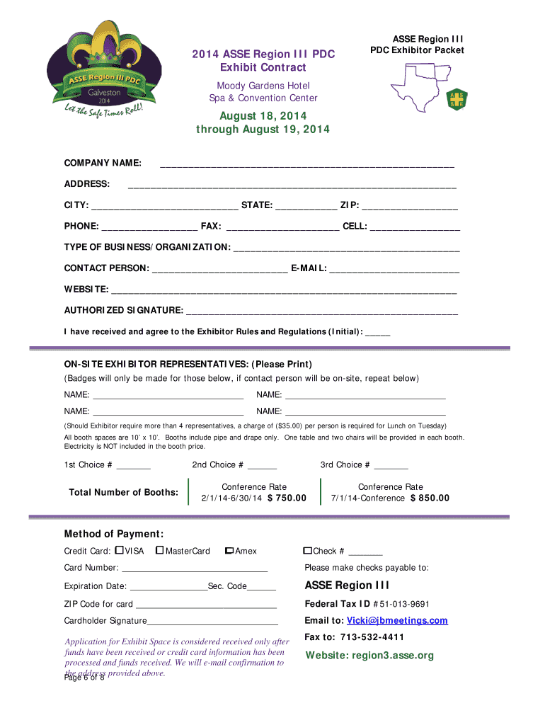 ASSE Region III Professional Development Conference and Exposition 2014 Exhibitor Packet American Society of Safety Engineers, Region III, invites you to participate as an exhibitor in this year s