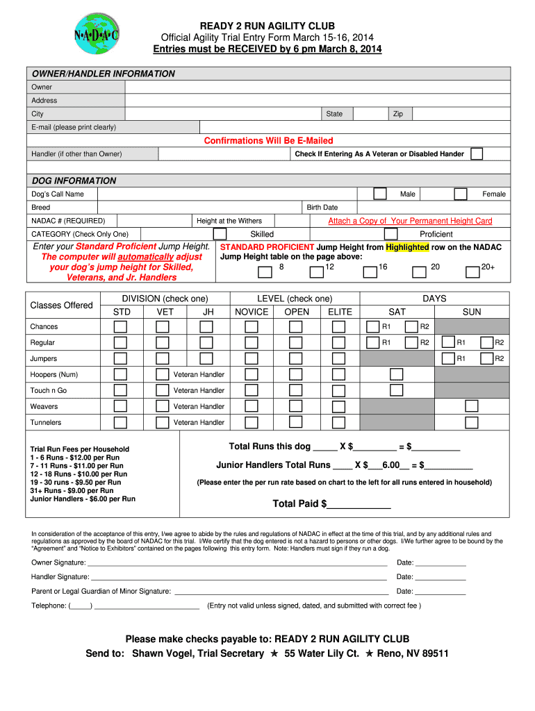 8th Annual St. Paddy s Day Celebration North American Dog Agility Council All Breed Agility Trial March 15-16, 2014 to be held at WAG, Inc. (Western Agility Group) 10925 Vaudeville Road, Elk Grove,