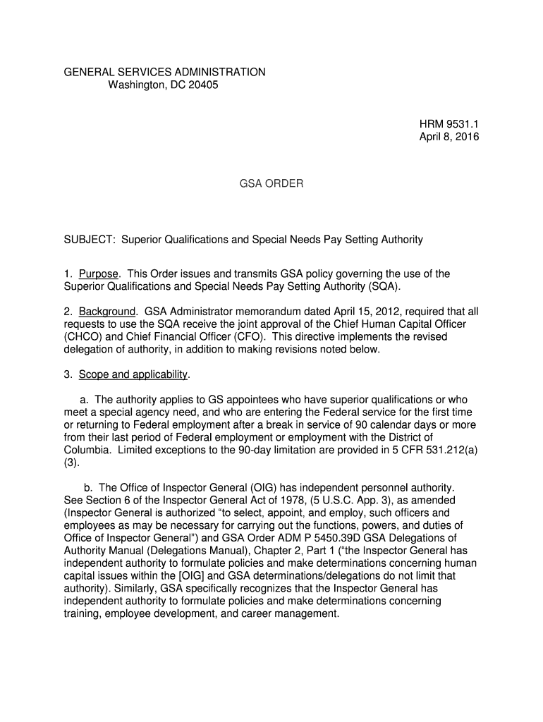 April 8, 2016GSA ORDERSUBJECT: Superior Qualifications and Special Needs Pay Setting Authority