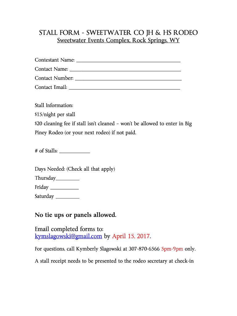 Get the free STALL FORM - SWEETWATER CO JH & HS RODEO