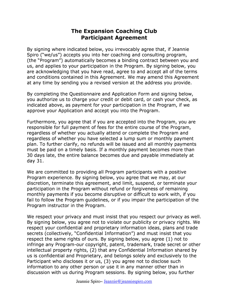 Get the free Expansion CC Coaching Terms and Agreement.docx