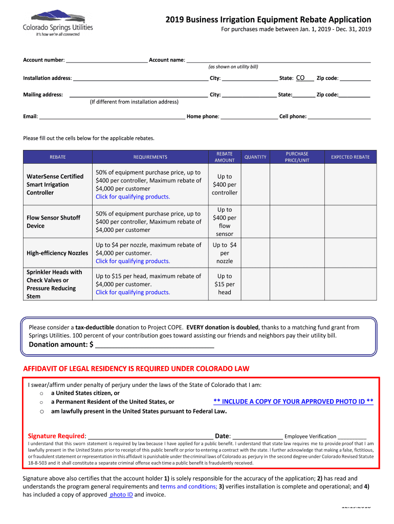 2019BusinessIrrigationEquipmentRebateApplication ForpurchasesmadebetweenJan.1,2019Dec.31, 2019 BusinessIrrigationEquipmentRebateProgramRules Qualifyingpurchasemustbenew. Productsthatareused, rebuilt,