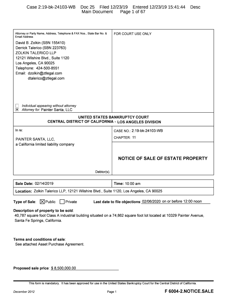 Case 2:19bk24103WBDoc 25 Filed 12/23/19 Entered 12/23/19 15:41:44 Main Document Page 1 of 67Attorney or Party Name, Address, Telephone & FAX Nos., State Bar No. & Email AddressDescFOR COURT USE ONLY