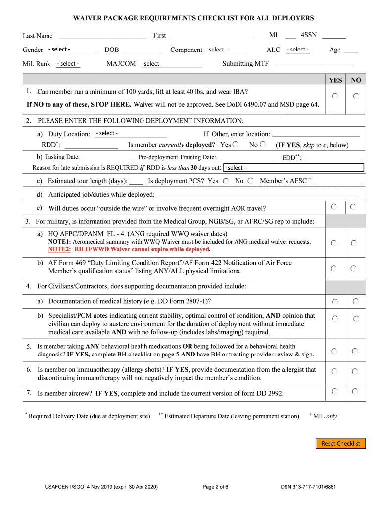 Get the free USCENTCOM has designated USAFCENT/SG as the service waiver authority for all AF members