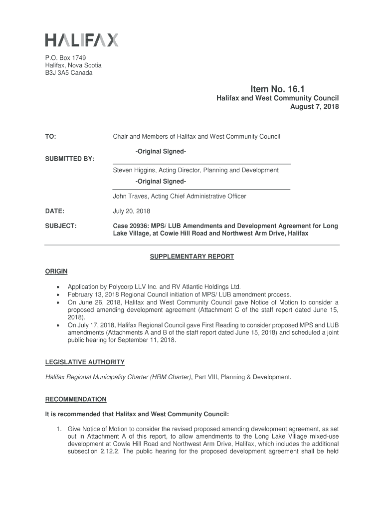 August 7, 2018TO:Chair and Members of Halifax and West Community Council