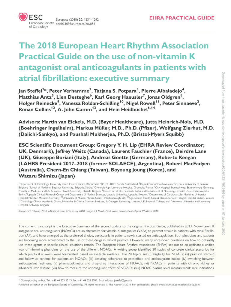 DOI:10.1093/europace/euy054EHRA PRACTICAL GUIDE Jan Steffel1×, Peter Verhamme2, Tatiana S. Potpara3, Pierre Albaladejo4,