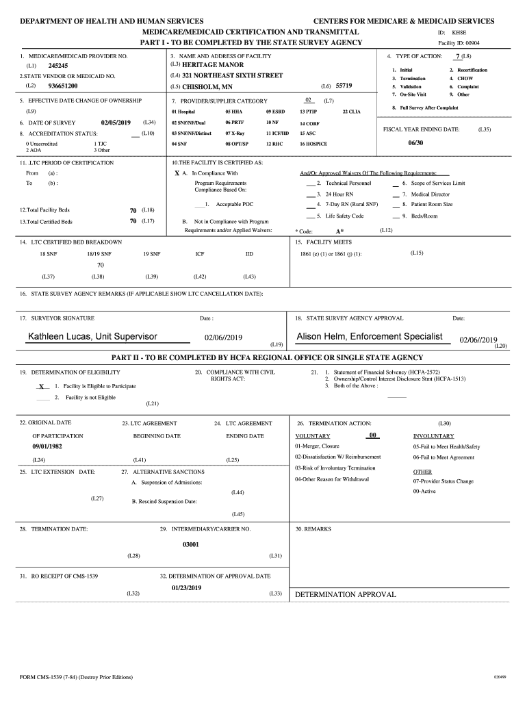 DEPARTMENT OF HEALTH AND HUMAN SERVICES CENTERS FOR MEDICARE & MEDICAID SERVICES MEDICARE/MEDICAID CERTIFICATION AND TRANSMITTAL ID: KH8E Facility ID: 00904 PART I TO BE COMPLETED BY THE STATE SURVEY