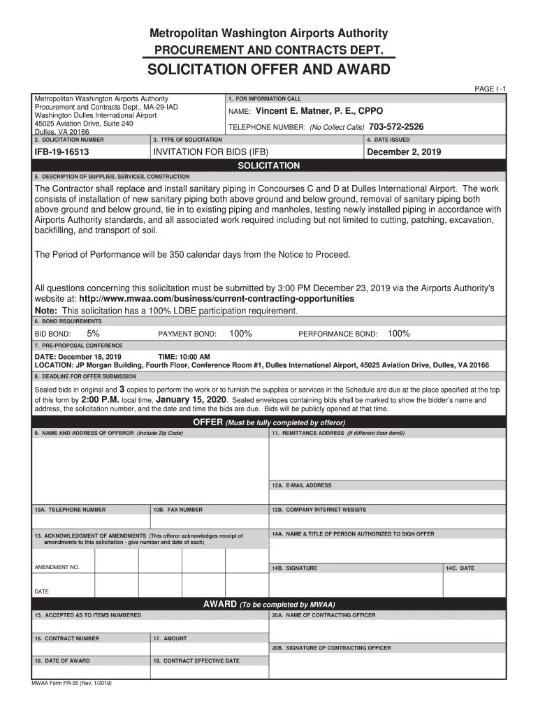 PROCUREMENT AND CONTRACTS DEPT.SOLICITATION OFFER AND AWARD