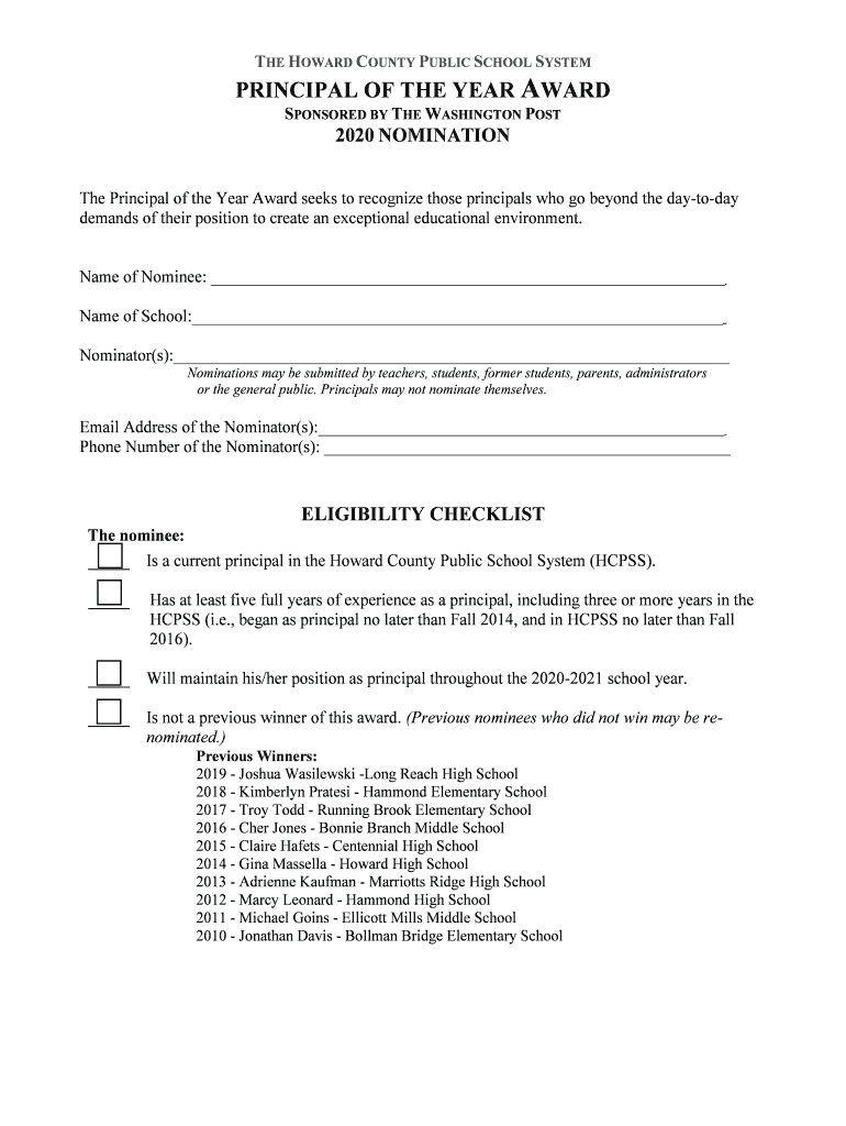Get the free Nominations for HCPSS Principal and Teacher of the Year ...