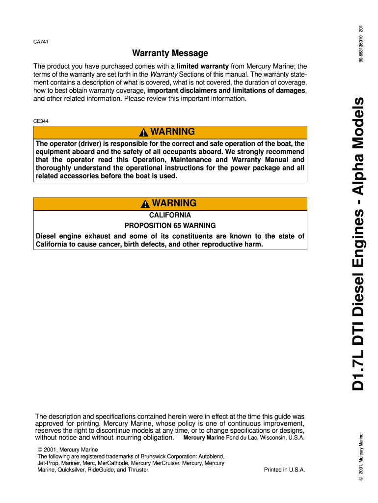 90863136010 201The product you have purchased comes with a limited warranty from Mercury Marine; the