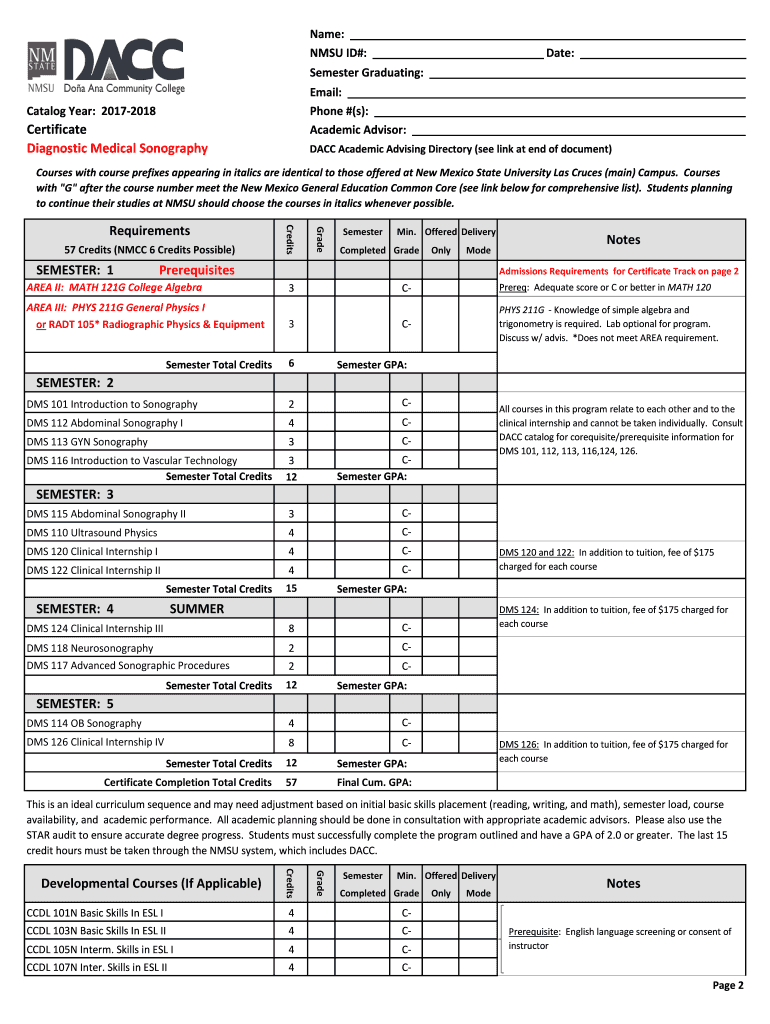 Name: MSU ID#: Date: Semester Graduating: Email: Phone #(s): Academic Advisor: Catalog Year: 20172018Certificate Diagnostic Medical SonographyDACC Academic Advising Directory (see link at end of document)Courses