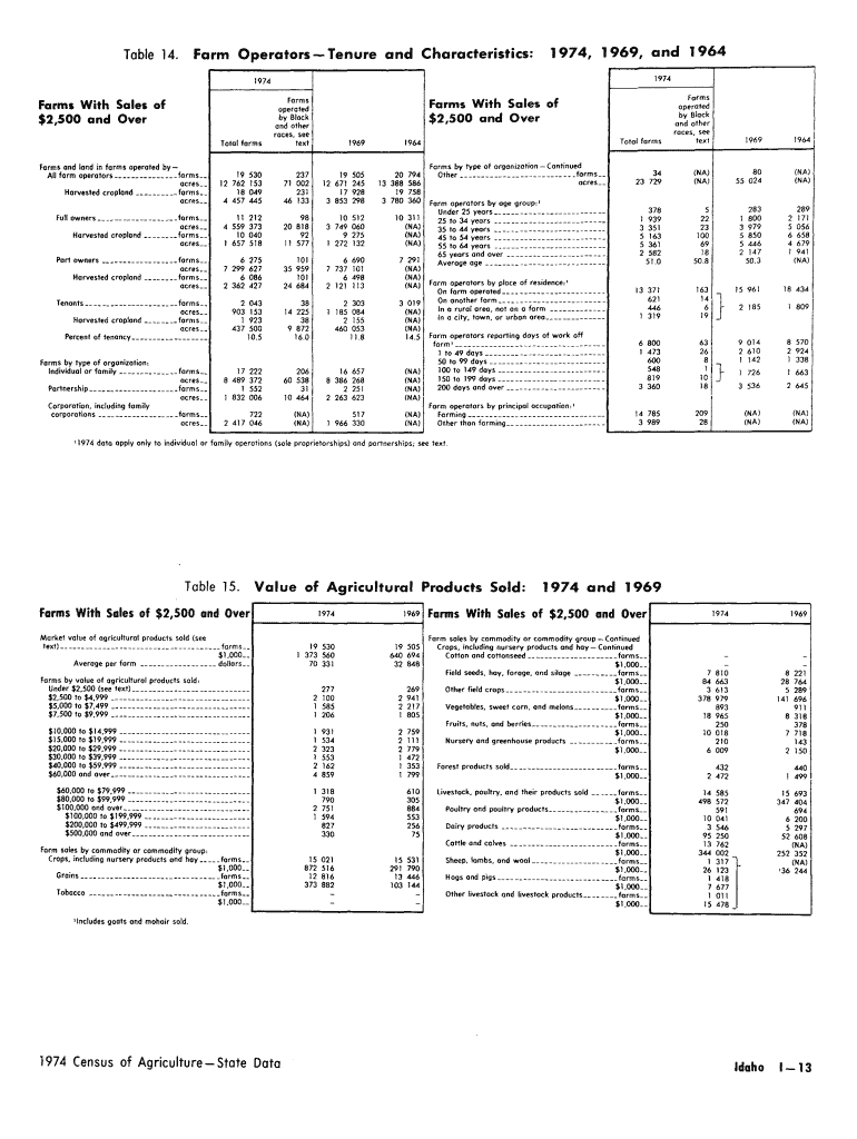 Farm Operators Tenure and Characteristics:Table 14.1974, 1969, and 1964 19741974 Farmyards With Sales of $2,500 and Overly Blackpool forms and long in forms operated BYU farm operators forms acres