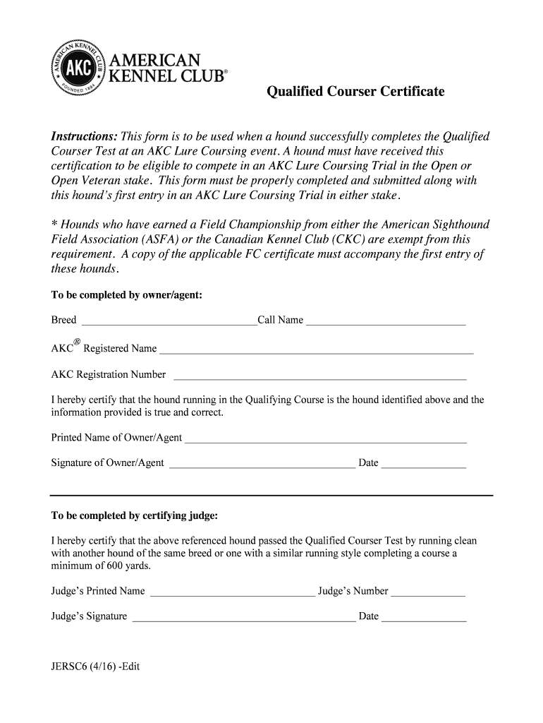 Instructions: This form is to be used when a hound successfully completes the Qualified