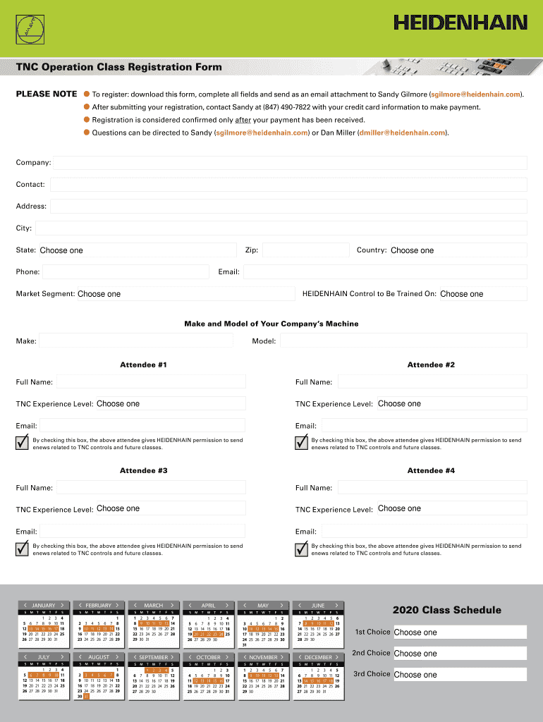 PLEASE NOTE l To register: download this form, complete all fields and send as an email attachment to Sandy Gilmore (sgilmore@heidenhain.com).