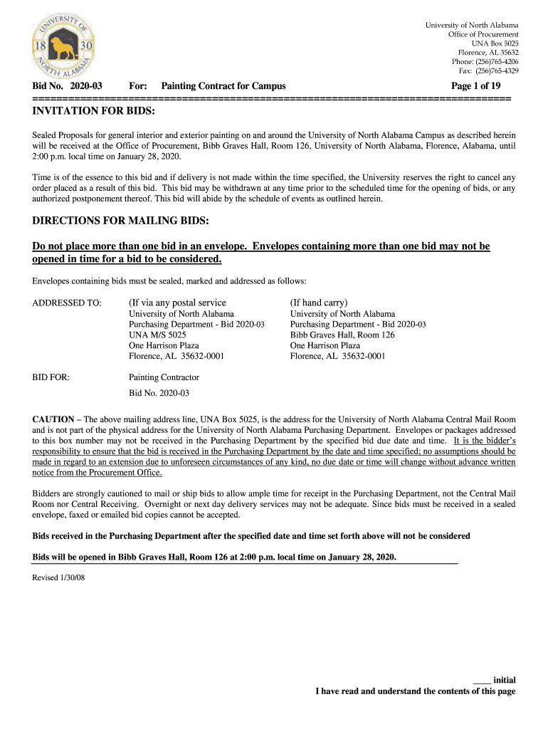 Fax: (256)7654329Bid No. 202003For:Painting Contract for Campus Page 1 of 19