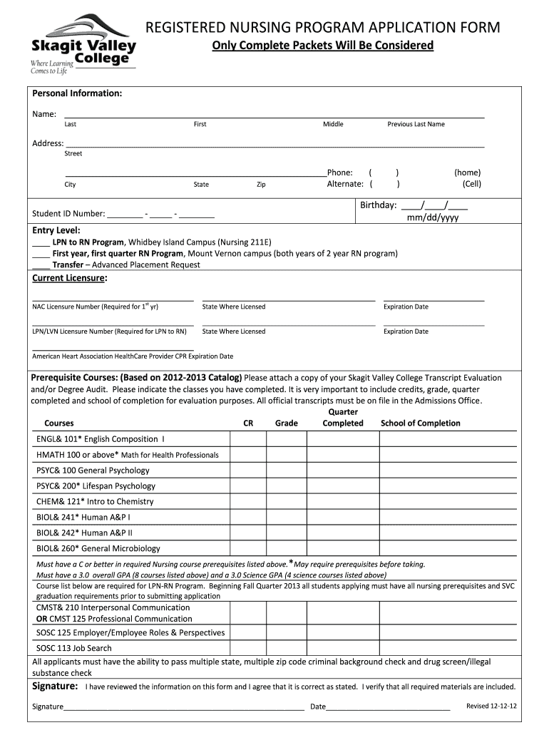 Get the free REGISTERED NURSING PROGRAM APPLICATION FORM - skagit