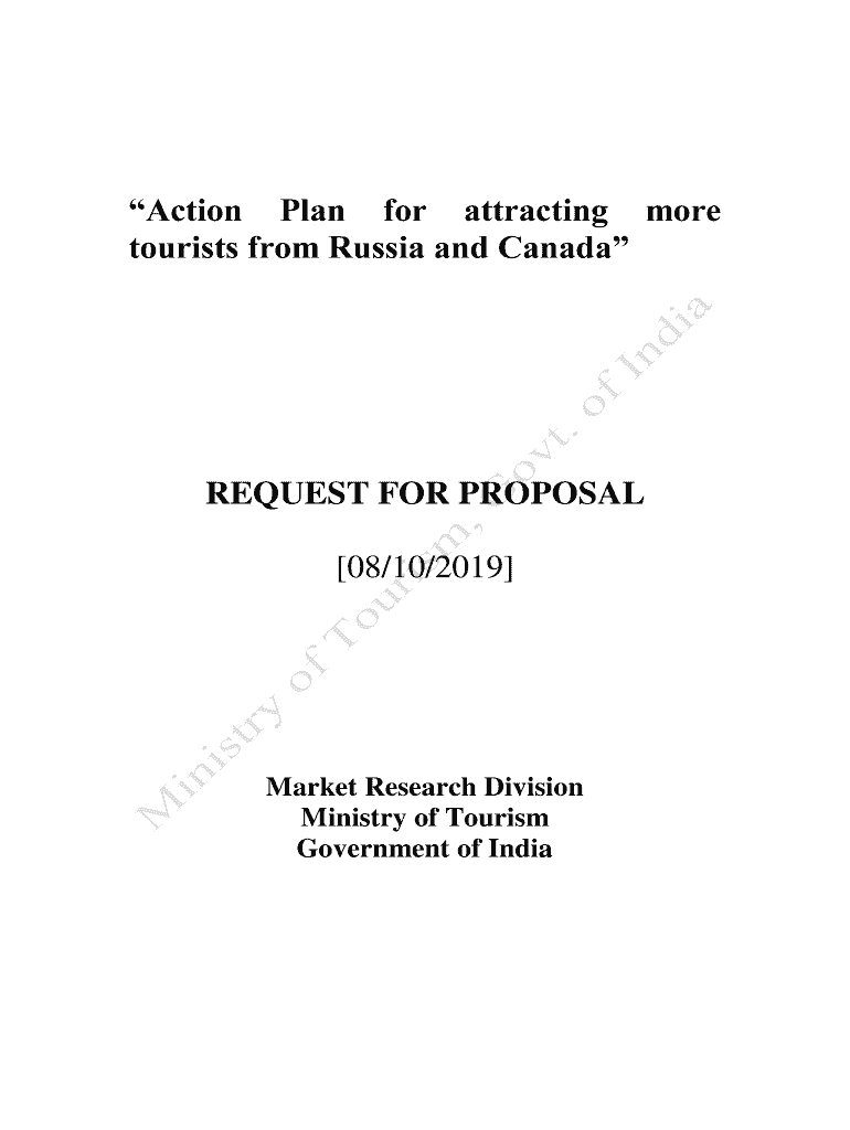 Action Plan for attracting more tourists from Russia and CanadaREQUEST FOR PROPOSAL 08/10/2019 Market Research Division Ministry of Tourism Government of Discontents of RFP Section 1:Instructions