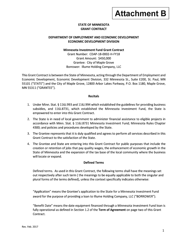 Minnesota Investment Fund Grant Contract