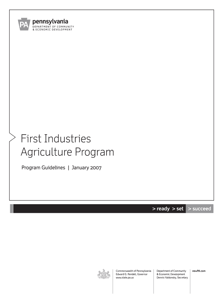 First Industries Agriculture Program Guidelines January 2007 ready set succeed Commonwealth of Pennsylvania Edward G. Wendell, Governor www.state.pa.usDepartment of Community & Economic Development