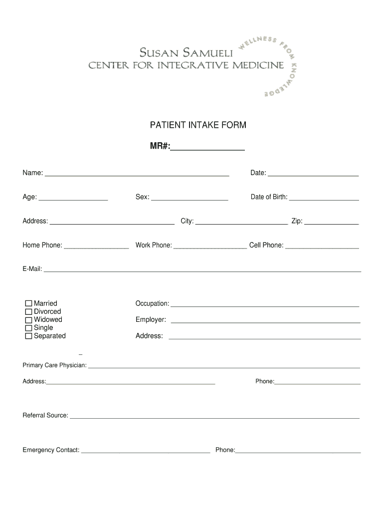 The Patient Intake Form must be completed by new patients registering for healthcare services, as well as by anyone required to provide medical information to healthcare providers.