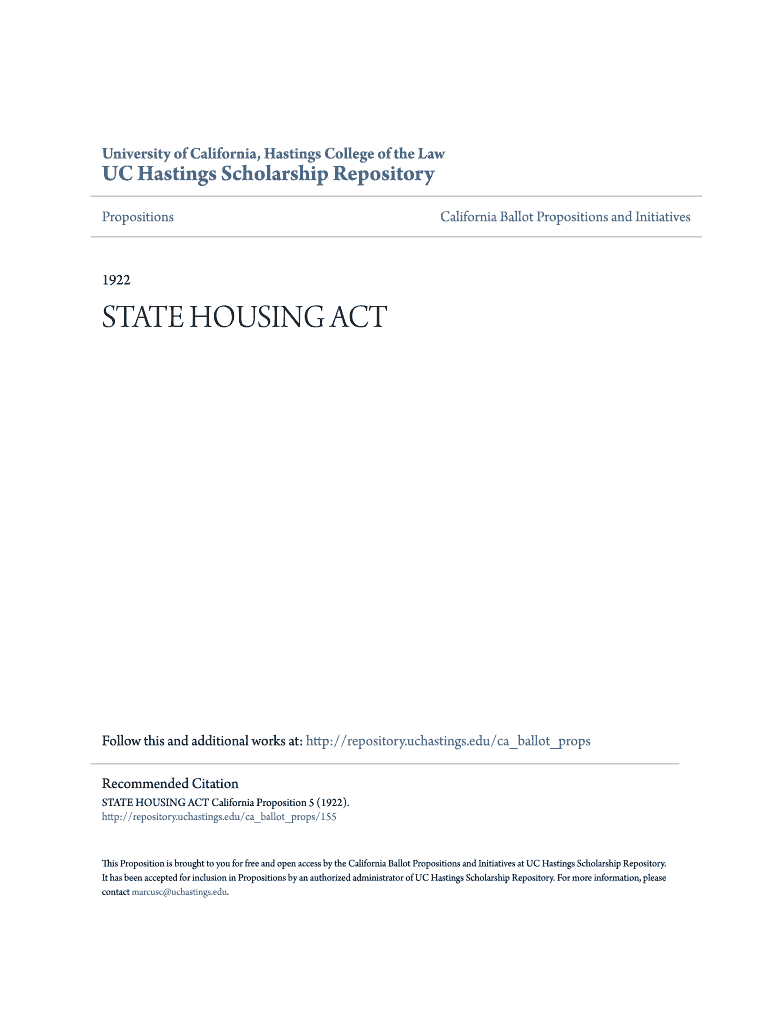 Propositions California Ballot Propositions and Initiatives1922STATE HOUSING Follow this and additional works