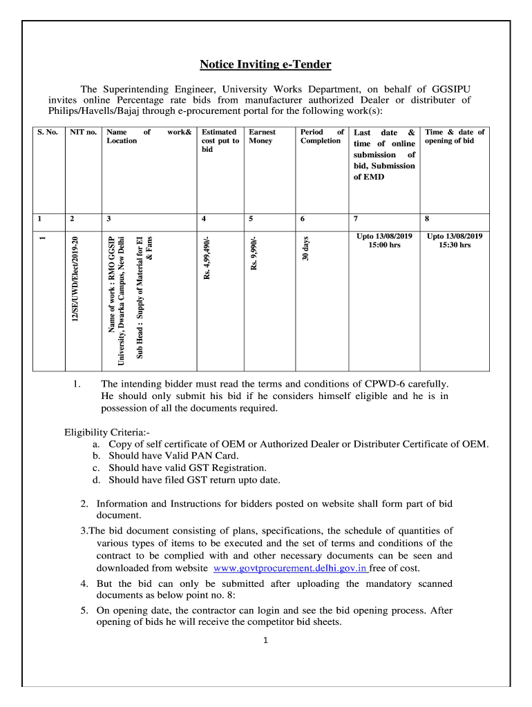 Get the free Notice Inviting e-Tender - Guru Gobind Singh Indraprastha ...