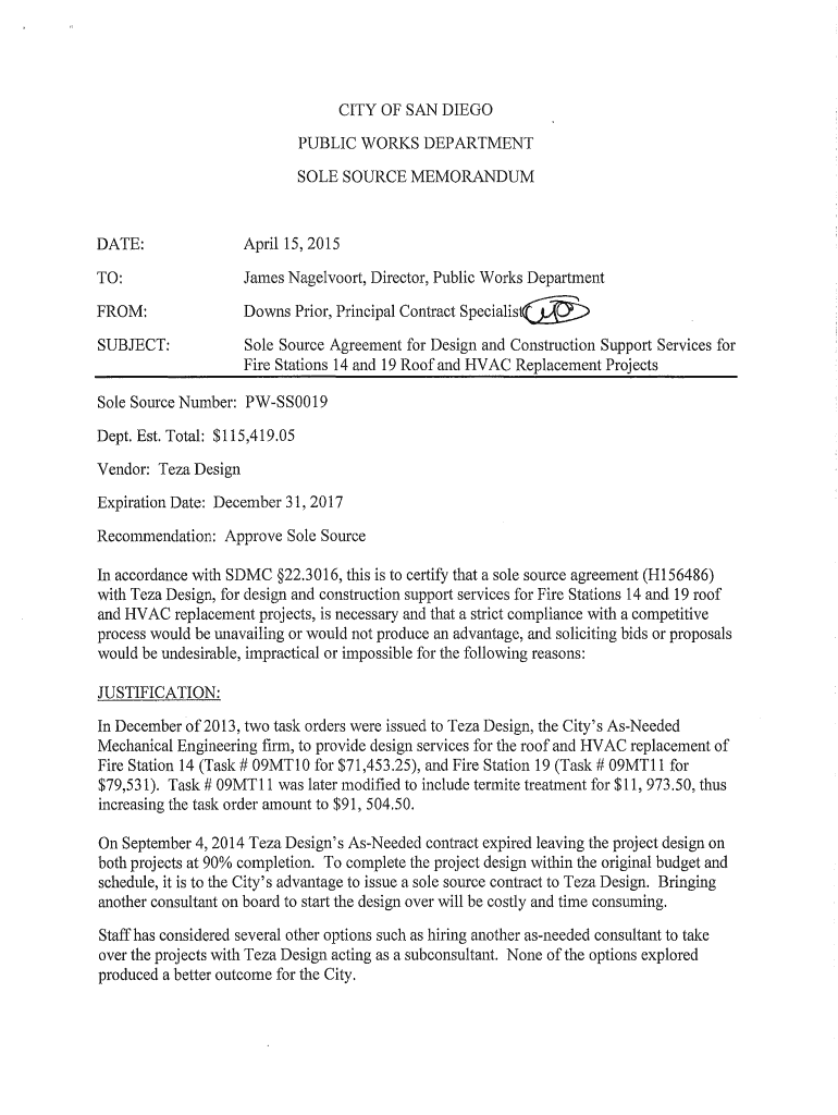 Get the free SOLE SOURCE MEMORANDUM