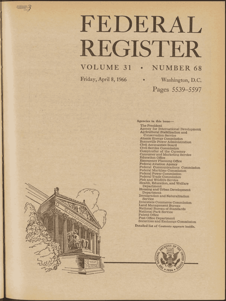 VOLUME31Friday, April 8, 1966, N U M B E R 68Washington, D.C. Pages 55395597Agencies in this issue President