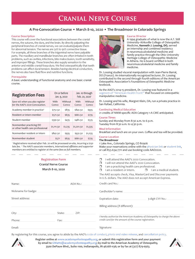 Cranial Nerve Course A Convocation Course March 810, 2020 The Broadmoor in Colorado Springs Course Description This course will cover the functional associations between the cranial nerves, the sutures,